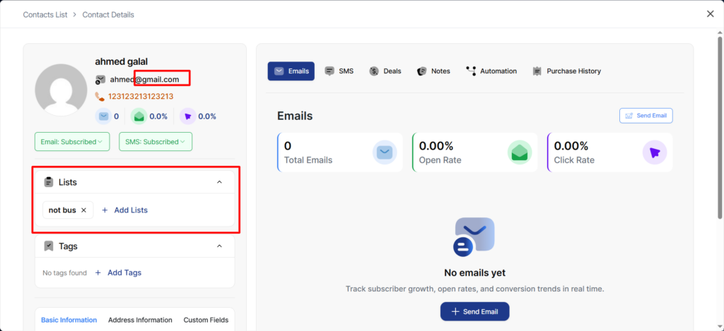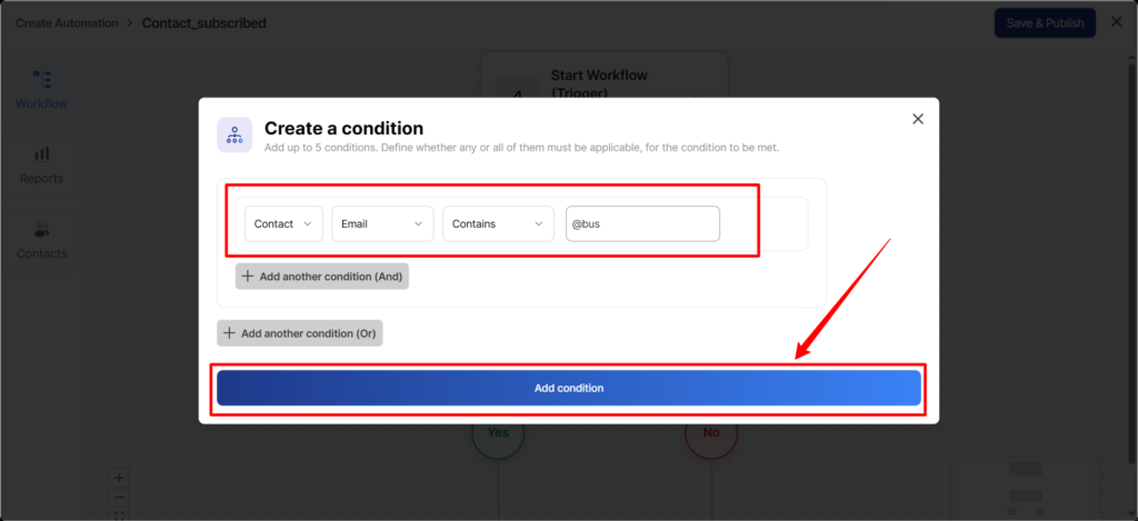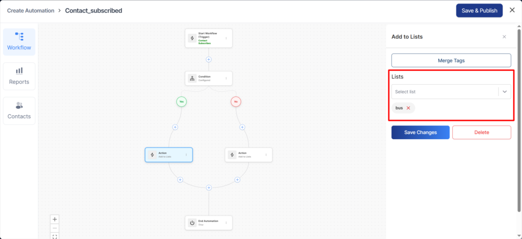 If the email contains @bus, the automation will add the contact to the “bus” list.