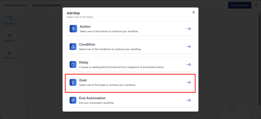 Contact Subscribed—Achieve the goal when a contact subscribes to your system.
