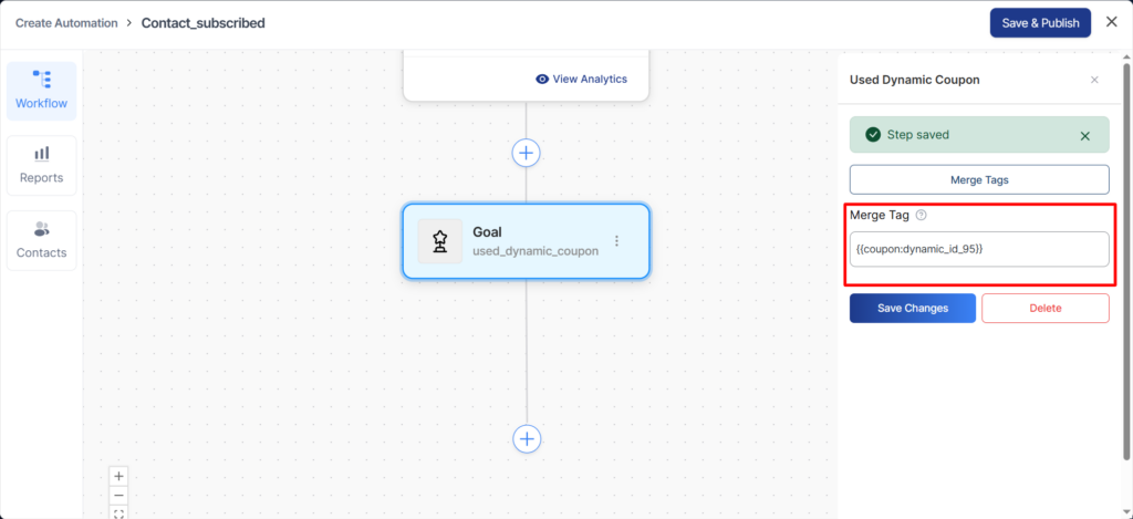 Goal: Used Dynamic Coupon—This checks whether the contact has used the coupon.