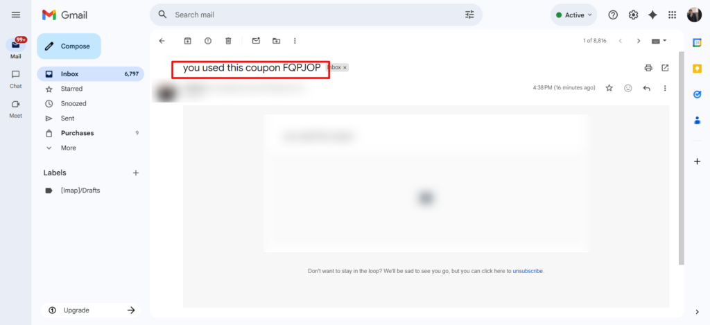• If the coupon is not used, no email will be sent.