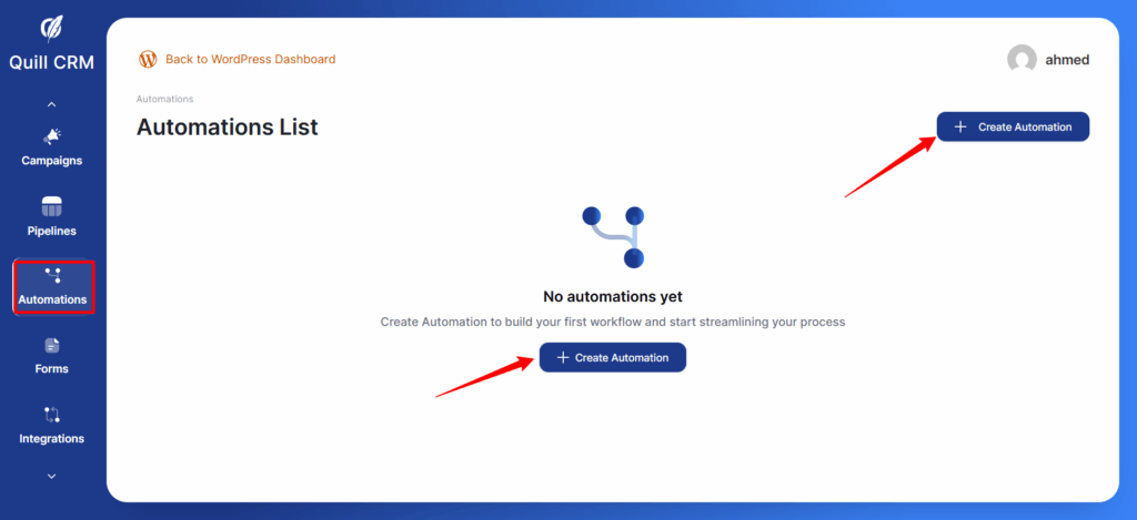 Go to Automations and click on Create Automation.