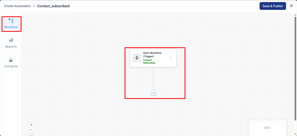 You will see the workflow along with the node for the trigger you selected earlier.