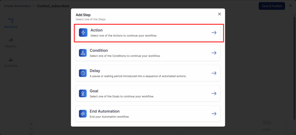 Here, we will select the Action.