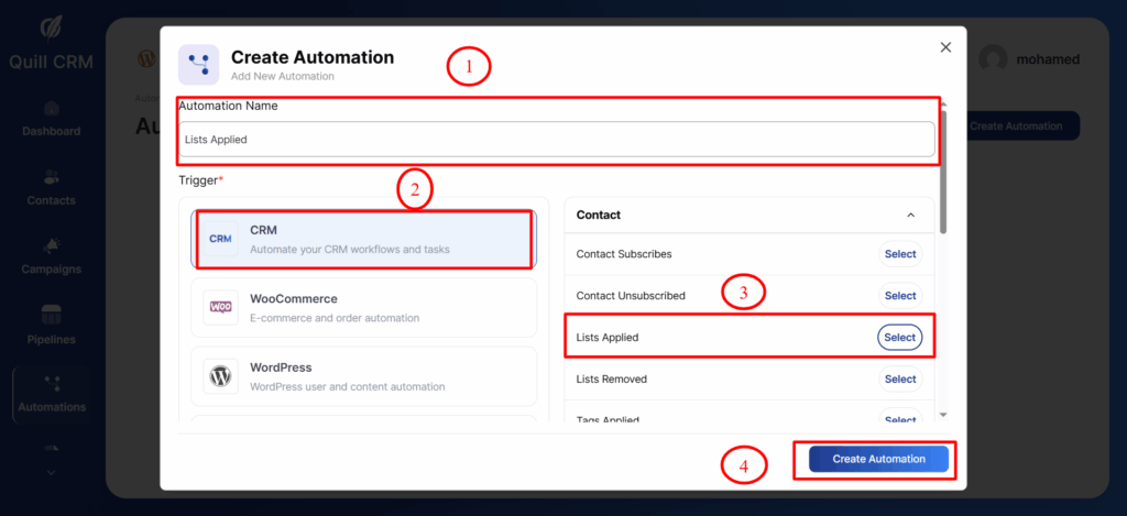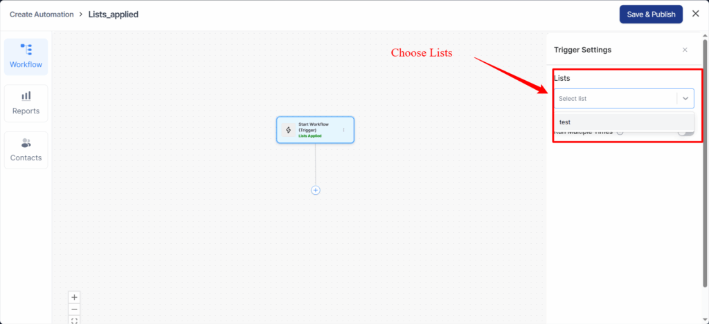 - Lists Applied — Automation gets triggered when a contact is added to a list.