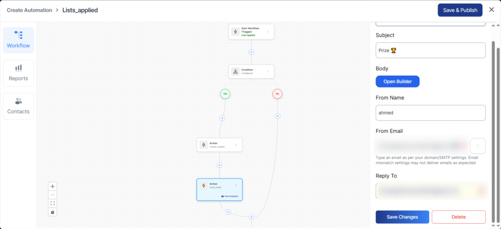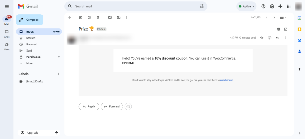 If the condition is met, an email containing a coupon code will be sent to the contact, which can be used in WooCommerce.