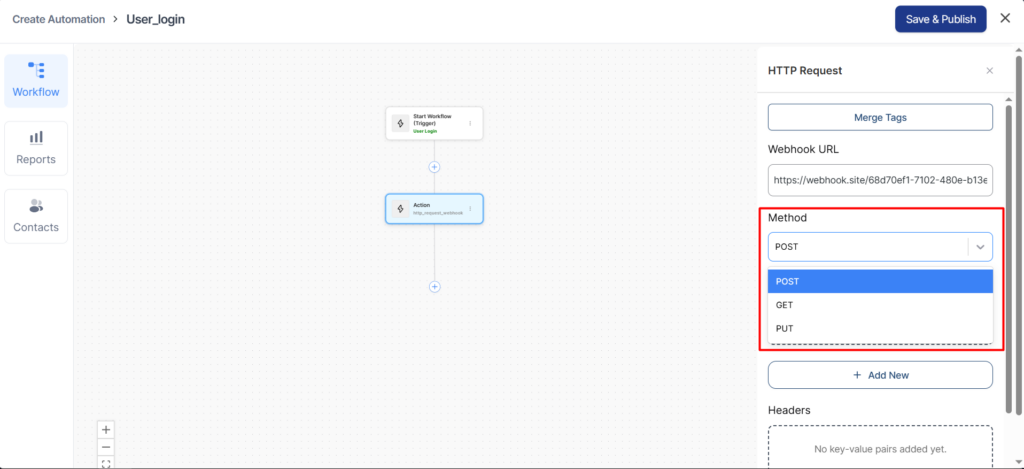 Choose your method among GET, POST, and PUT. If you’re not sure, the default option is POST.