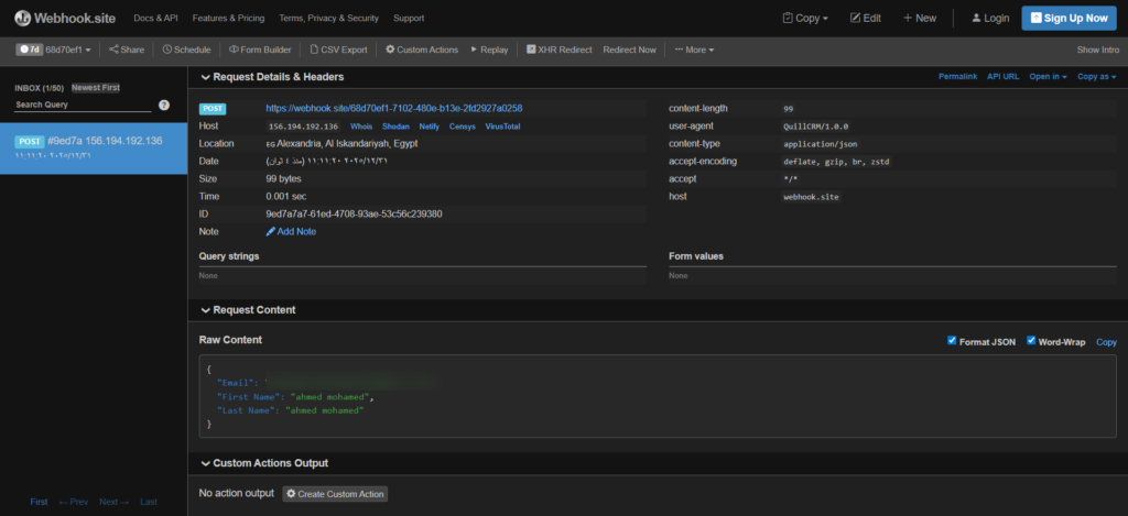 You’ll see that your data has been received on the webhook.site.