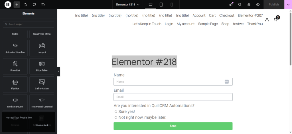 Well done! You’ve successfully set up an automation using Elementor Forms in QuillCRM Automations.