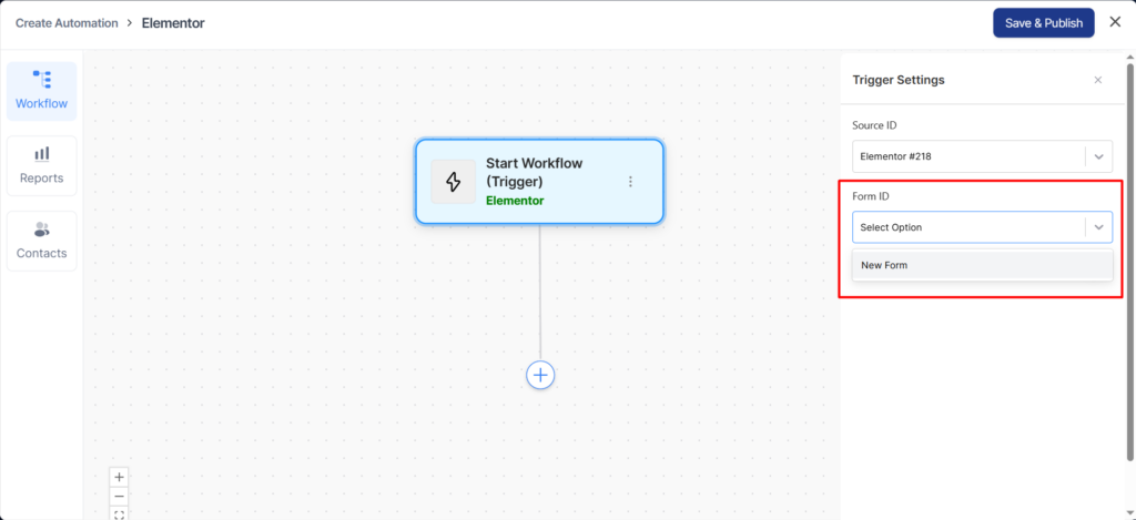 After that, go to the Automation tab and select the Elementor Forms trigger.