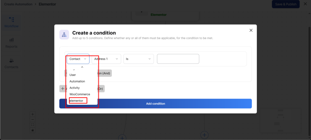 Select the “Form Field (Elementor Forms)” rule under the IF section.