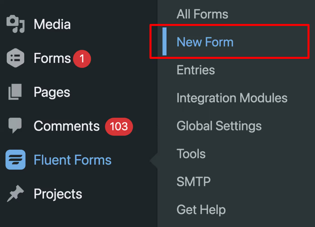 Under Fluent Forms, click on New Form.