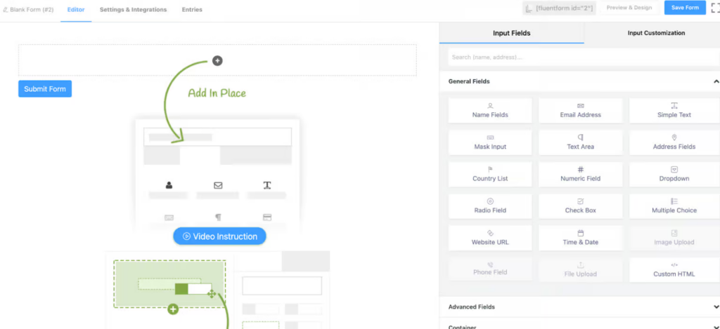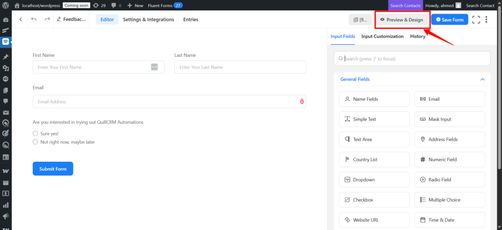 Create your form using the drag and drop feature provided by Fluent Forms.