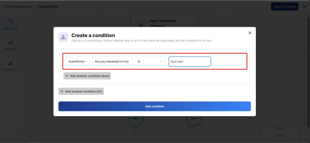 Then choose the field “Are you interested in trying out QuillCRM Automations?”