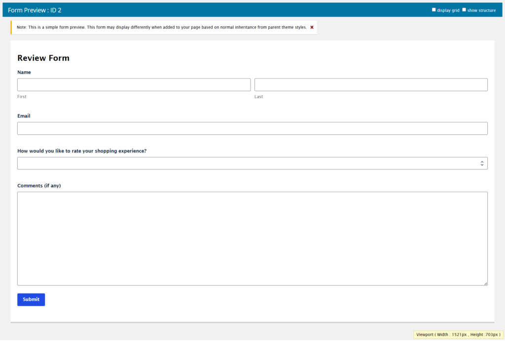 Enter your form name and description here, then hit the ‘Create Blank Form’ button.