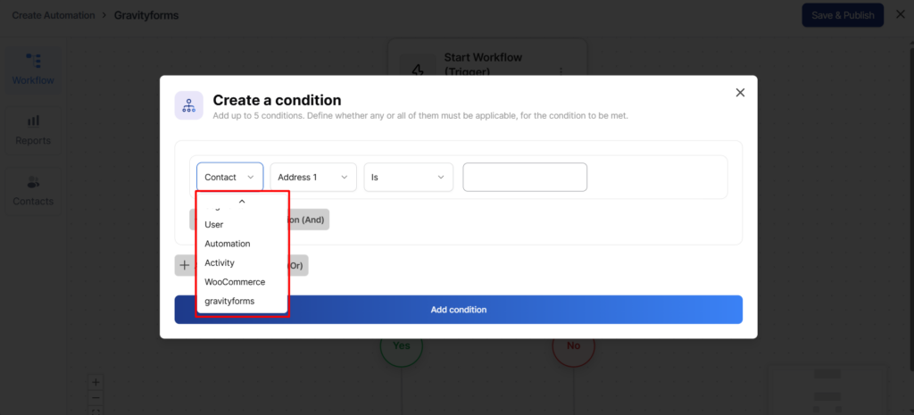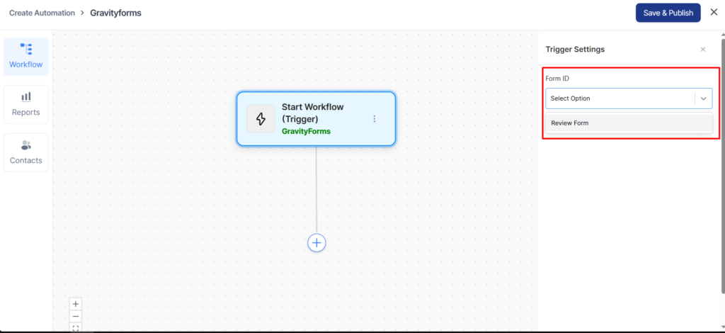 After that, go to the Automation tab and select the Gravity Forms trigger.