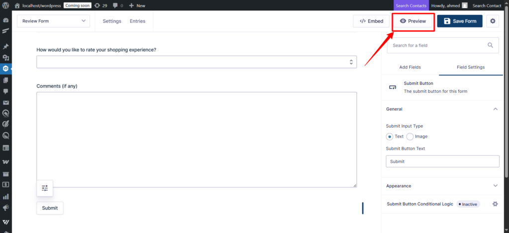 - Click + Add Field button