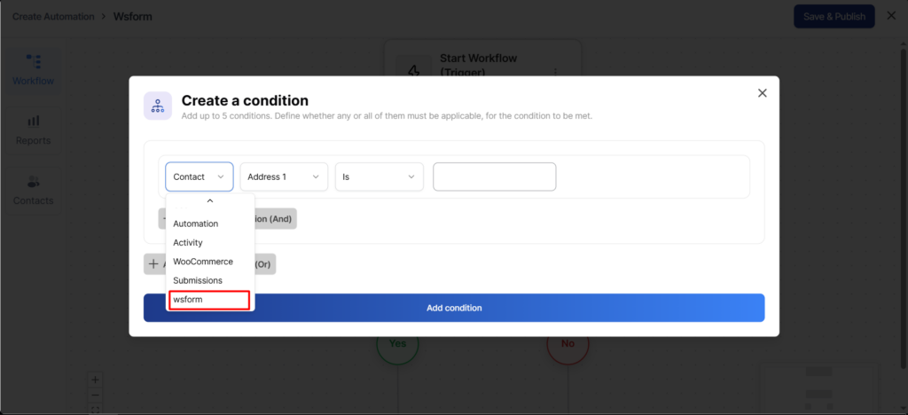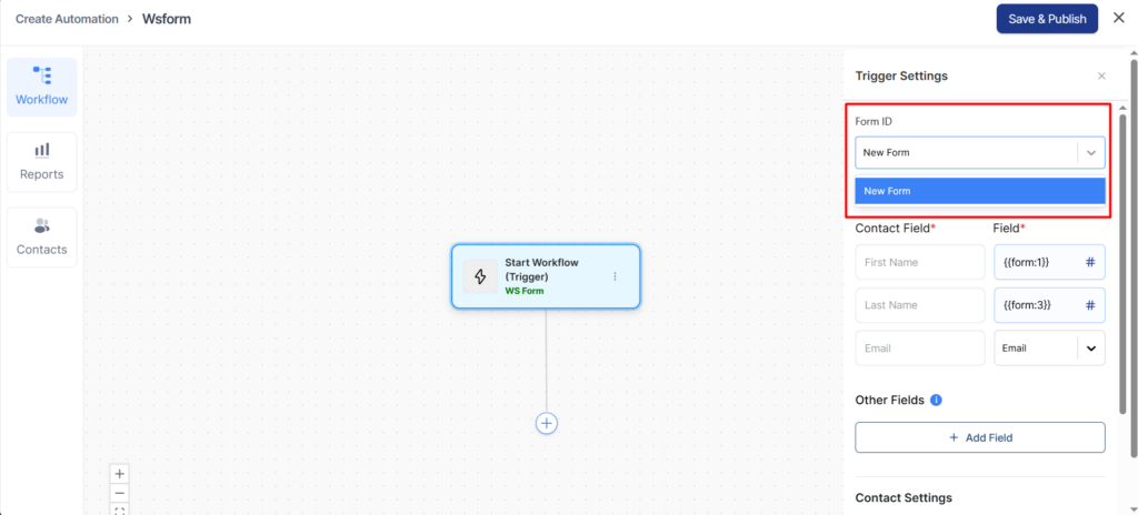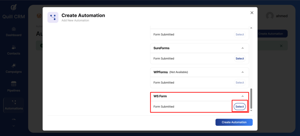 After that, go to the Automation tab and select the WSForm trigger.