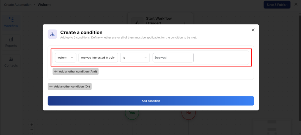 Then choose the field “Are you interested in trying out QuillCRM Automations?”