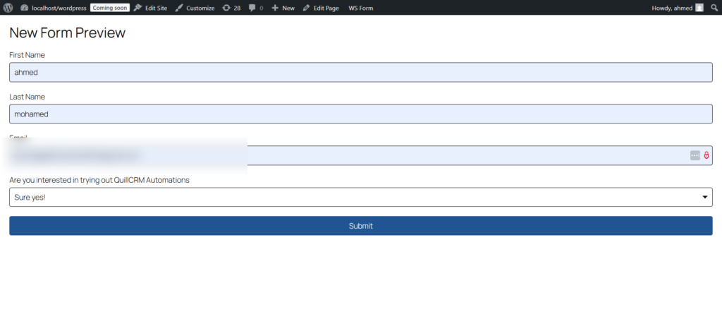 After that, go to the WSForms plugin and submit the Contact Form to trigger the automation.